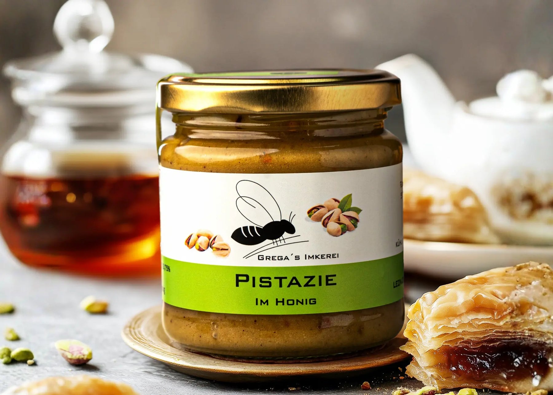 Genieße ein Stück pure Handwerkskunst aus unserer Familienimkerei – Pistazie im Honig ist ein wahres Geschmackserlebnis, das dich begeistern wird! 💚🍯✨